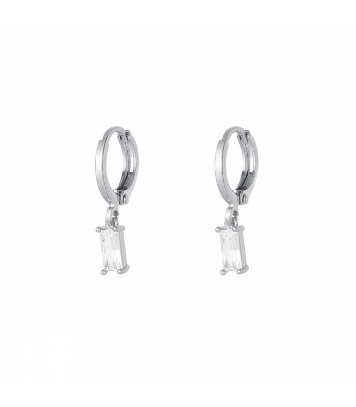 Zilverkleurige oorbellen met een rechthoekige steen.