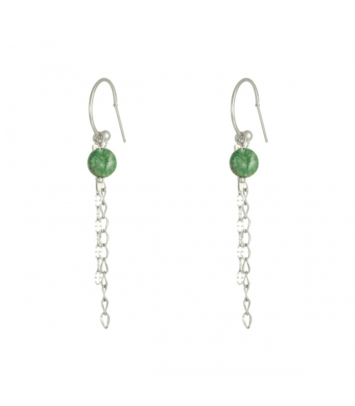 Zilverkleurige oorbellen streng en sleutel en groen steentje