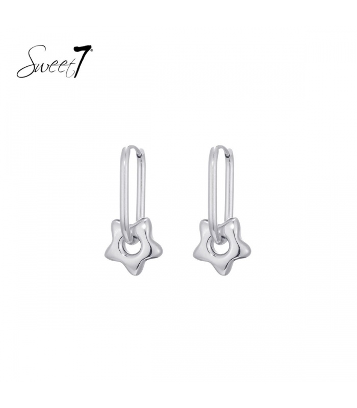 Zilverkleurige oorhangers met als bedel een bloem motief