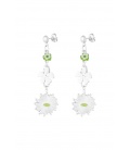 Zilverkleurige oorhangers met als bedel een bloem motief.
