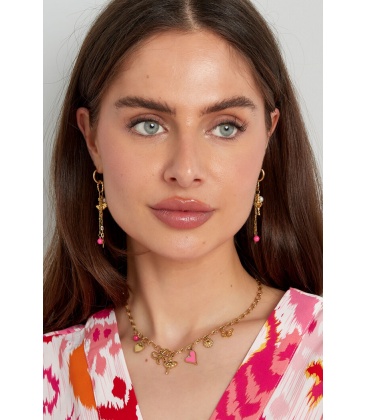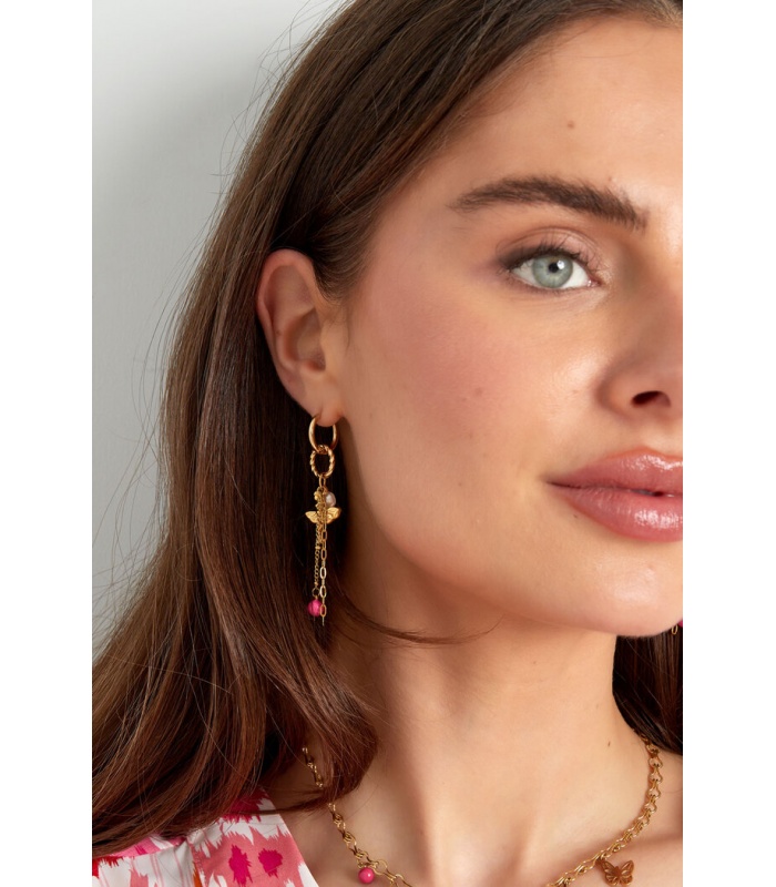Deze oorbellen zijn niet alleen een lust voor het oog, maar ook veelzijdig en makkelijk te combineren met diverse fashion stijlen. Of je nu gaat voor een casual look of een avond uit, ze bieden net dat beetje extra flair. Bovendien, wie kan de charme van dat ene roze kraaltje weerstaan dat net een vleugje kleur toevoegt?