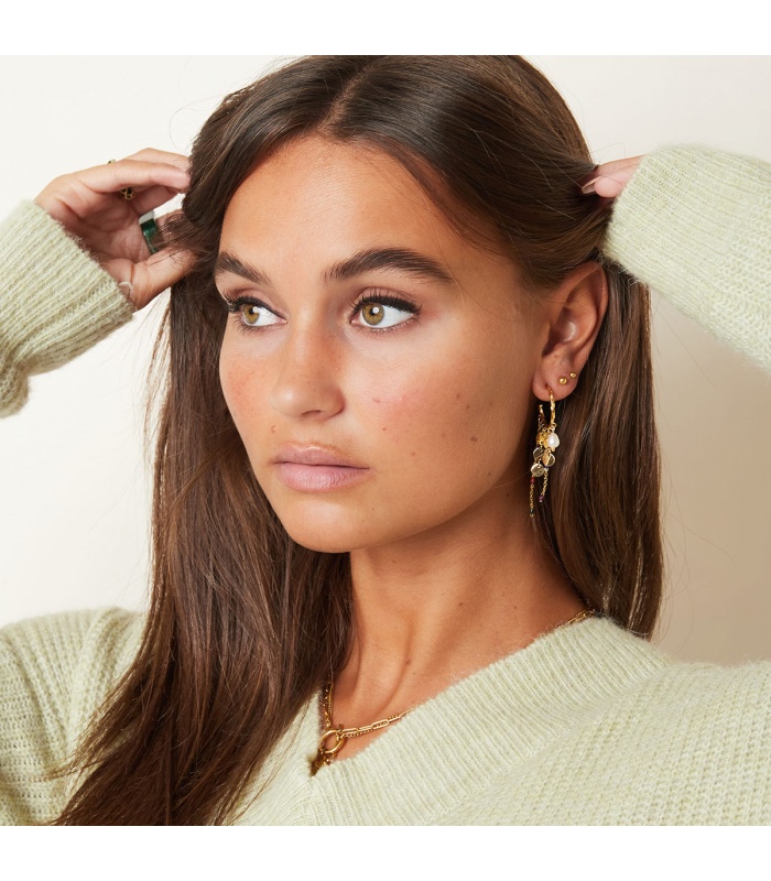 De oorbellen zijn nikkelvrij en worden voorzien van stoppertjes, zodat je ze comfortabel kan dragen en niet uit de oren glijden.