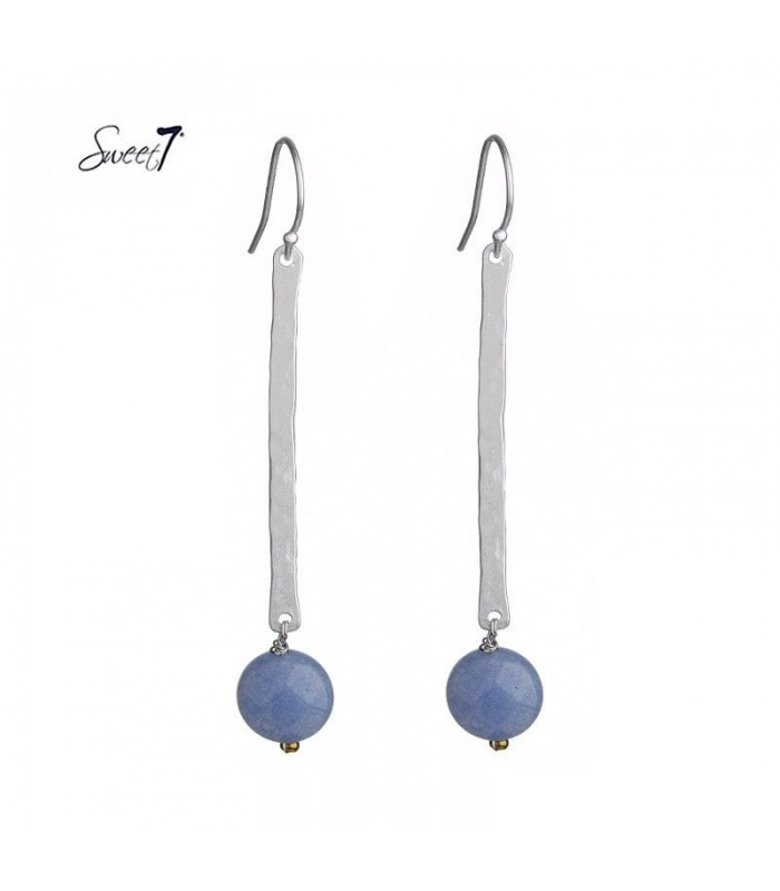 Zilverkleurige oorhangers met een licht blauwe kraal.