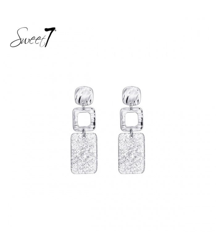 Zilverkleurige oorhangers met glitter en een vierkant element