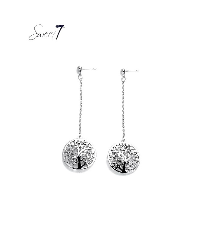 Zilverkleurige oorhangers met kettinkje en een levensboom