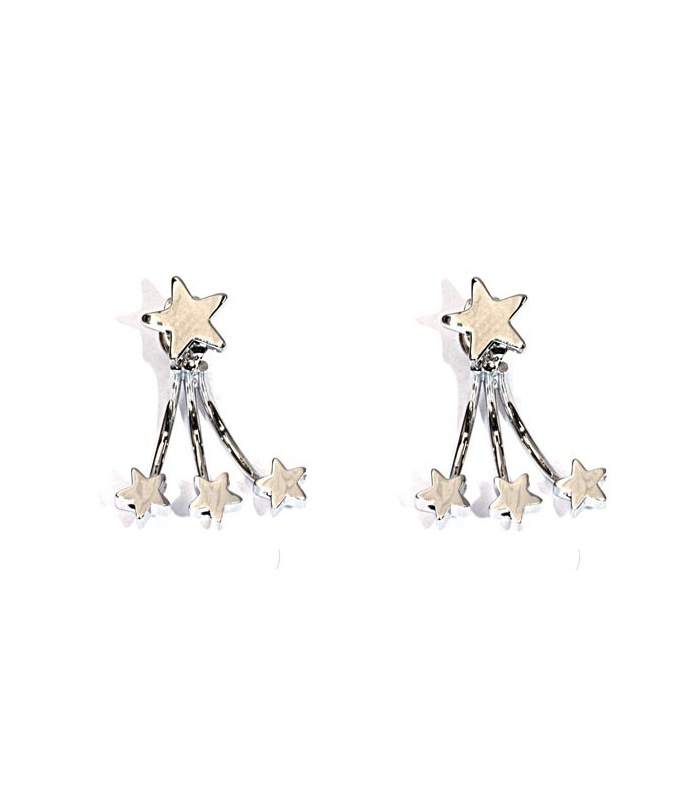 Zilverkleurige oorknopje met een ster en als hanger van 3 sterren