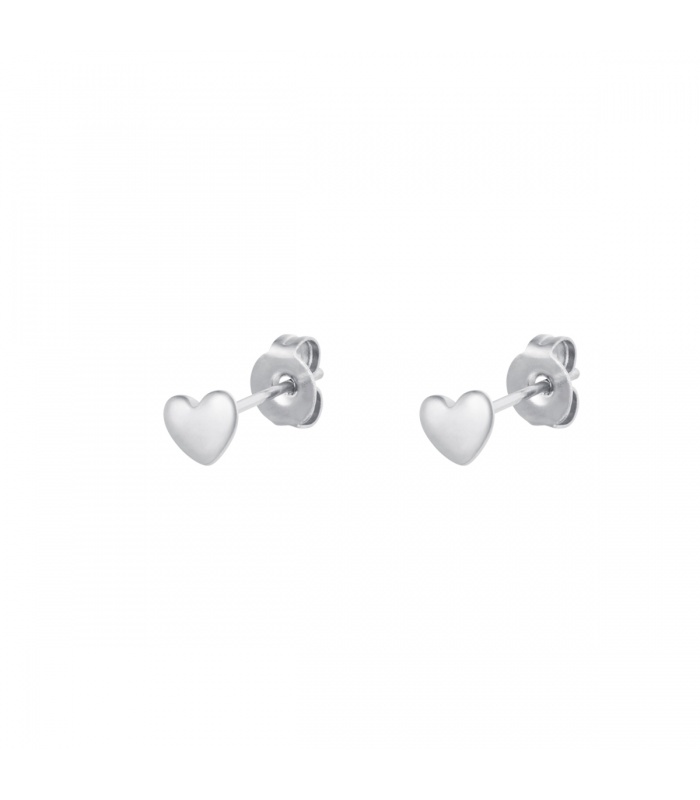 Zilverkleurige oorknopjes in de vorm van een hart.
