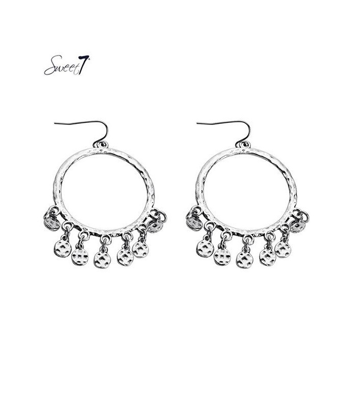 Zilverkleurige oorringen met kleine ronde bedeltjes.