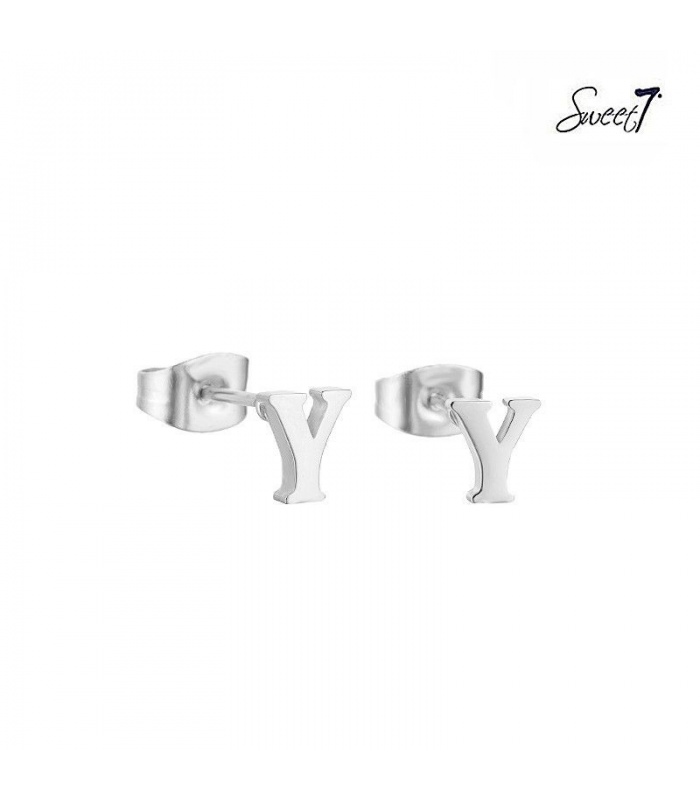Zilverkleurige oorstekers letter Y.