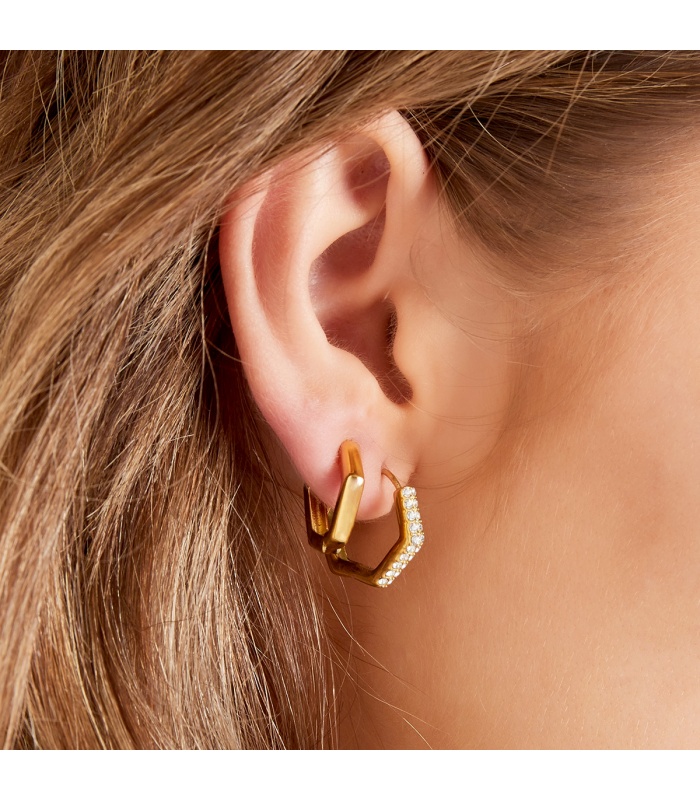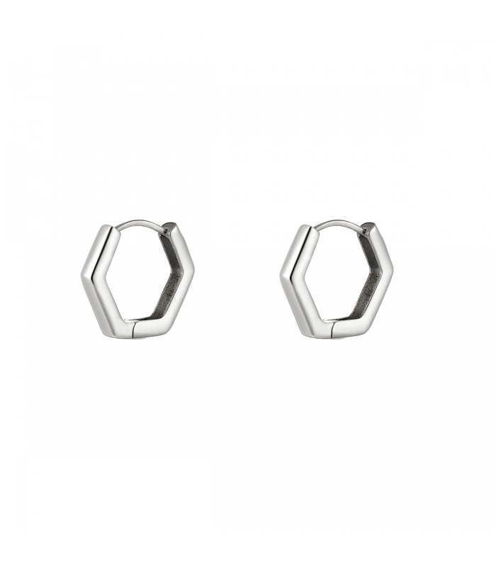 Zilverkleurige zeshoekige oorbellen.