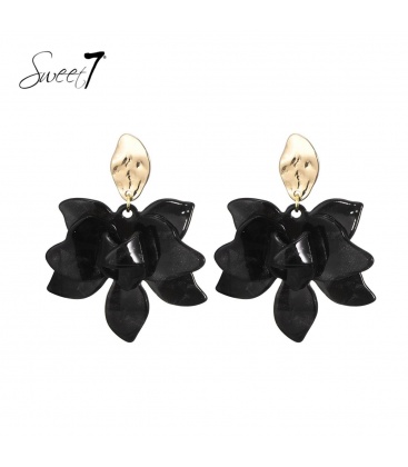 Deze zwarte bloemen oorhangers met een goudkleurig accent vormen een elegante fashion mix van mysterie en glans. Het bloemdesign biedt een tijdloze flair met speelsheid. Het goudkleurige onderdeel voegt luxe toe en geeft je outfit een verfijnde touch. Perfect voor modebewuste vrouwen die statement sieraden zoeken.