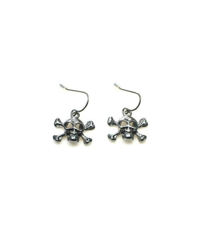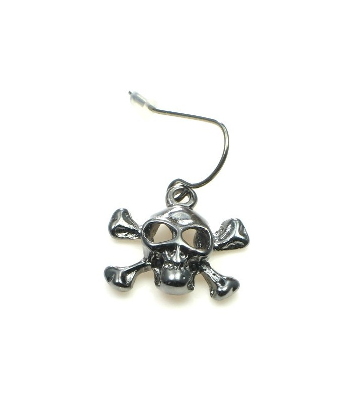 Zwarte (gun black) doodshoofd (skull) oorbellen Lengte van de oorbel inclusief haakje is 2,5 cm.