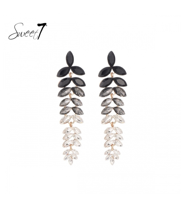 Zwarte lange oorhangers met glas steentjes