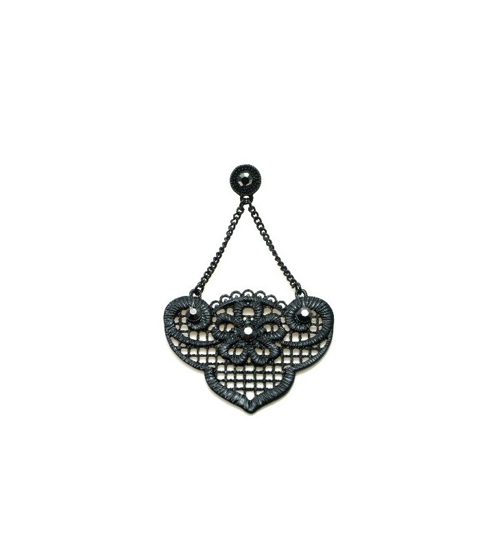 Zwarte oorbellen met zwarte strass. Lengte van de oorbel is 7,5 cm.