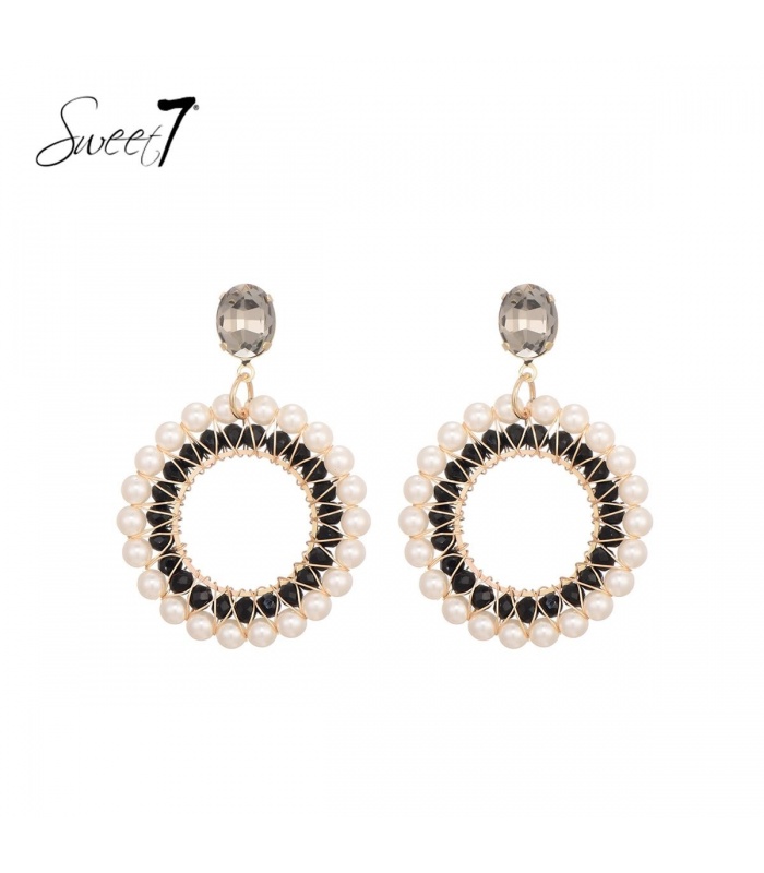 Zwarte oorhangers met een rand van witte kunst parels
