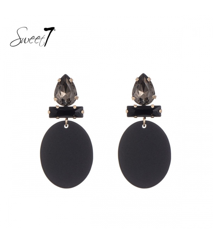 Zwarte ovale oorhangers glas steentjes.