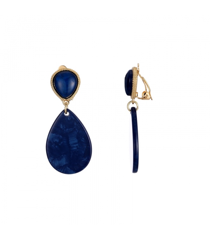 Blauwe oorclips met een blauw oorstukje en een goudkleurige rand