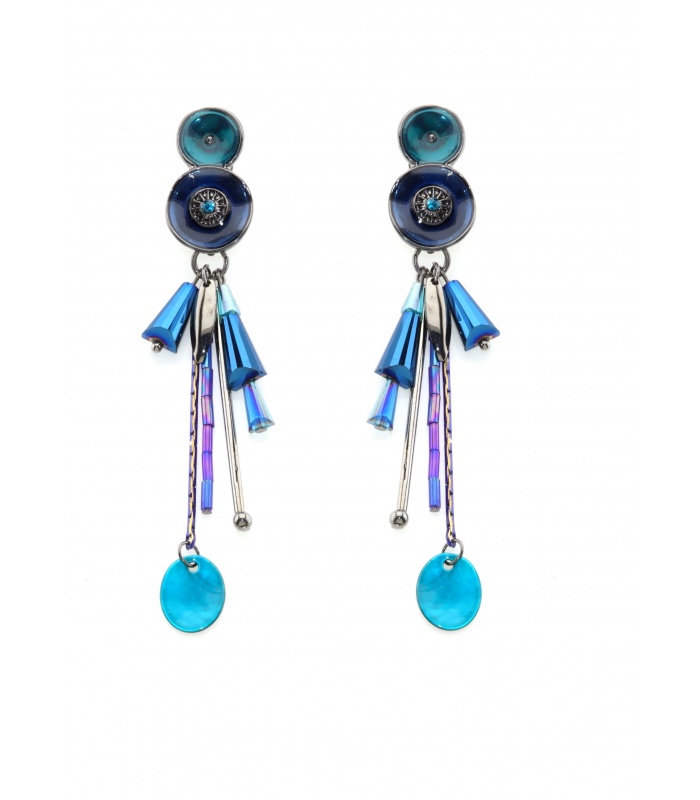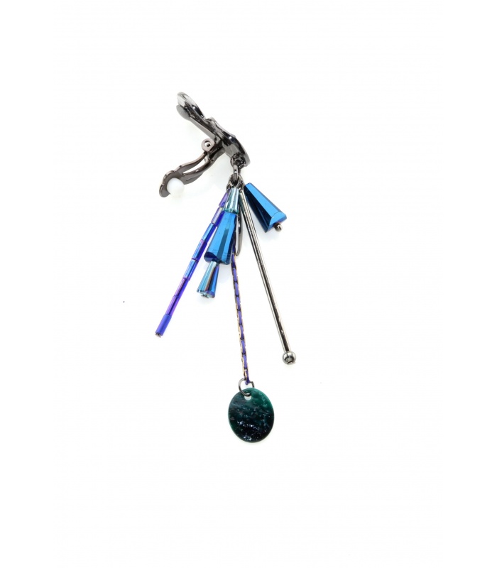 Deze blauwe oorclips met glaskralen en bedels voegen een levendige touch toe aan je outfit. De glanzende kralen en speelse bedels creëren een modieuze uitstraling, ideaal voor zowel casual als formele gelegenheden.