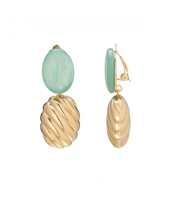 Oorclips met goudkleurige hanger: hemelsblauwe verfijning.