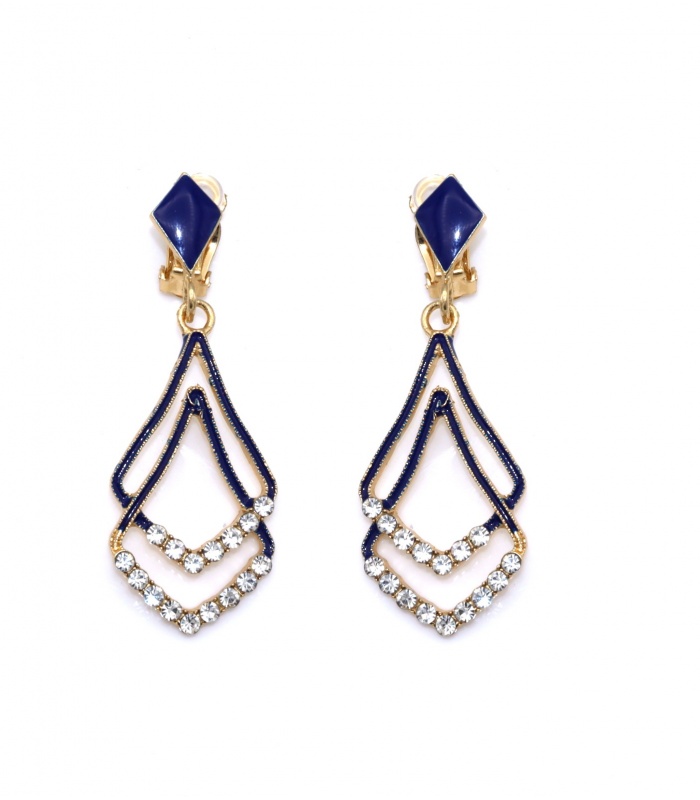 Oorclips zijn een stijlvol alternatief voor oorbellen zonder gaatjes. Deze blauwe oorclips met dubbele hanger en strass steentjes voegen een vleugje glamour toe aan elke outfit. De fonkelende steentjes vangen het licht prachtig op, terwijl de dubbele hanger zorgt voor een speels effect