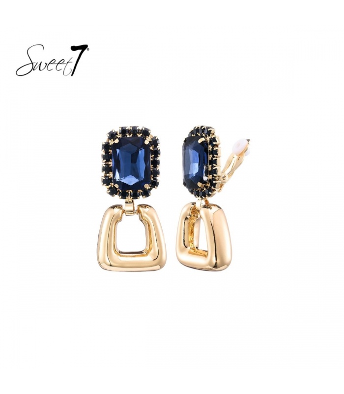 Hoe combineer je elegantie met een fashion statement? Deze oorclips doen het moeiteloos. De diepblauwe steen met facetgeslepen look vangt het licht prachtig en wordt omlijst door fonkelende blauwe accenten. De opvallende, goudkleurige hanger geeft een modern, geometrisch contrast.