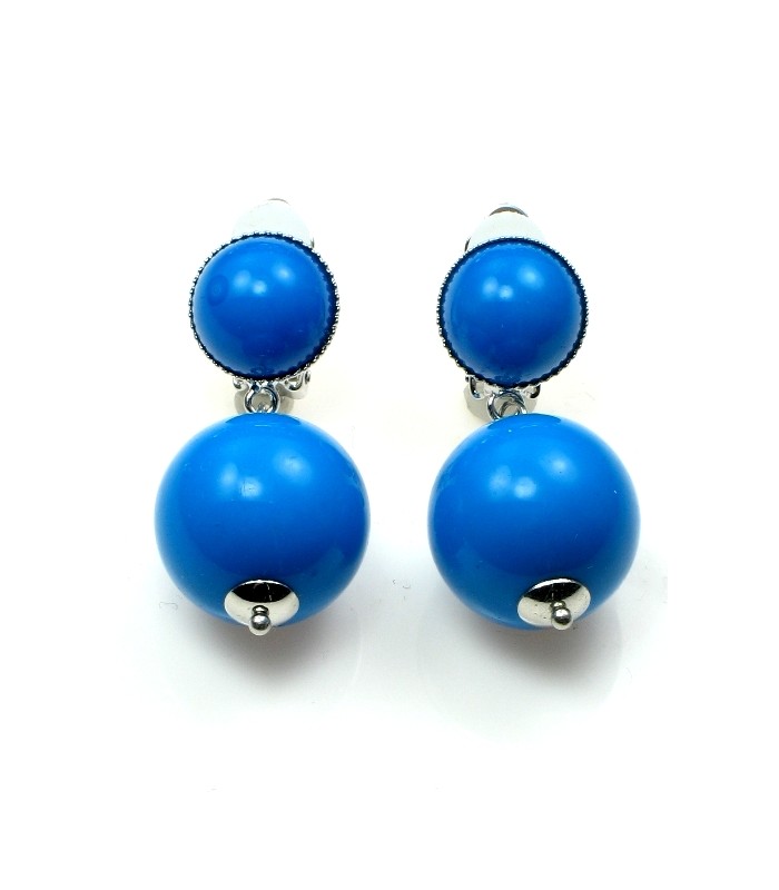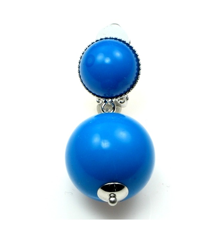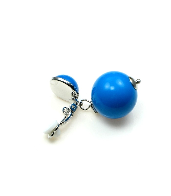 Oorclips met blauwe bolvormige hanger. Lengte van de clip oorbel is 4 cm.