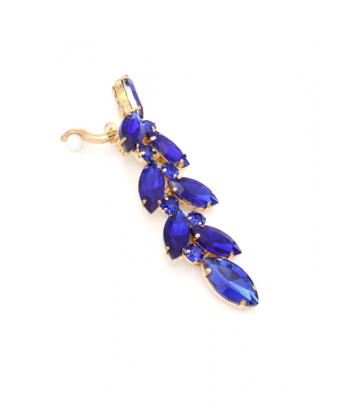 Prachtige blauwe lange oorclips met glas steentjes in goudkleurige setting