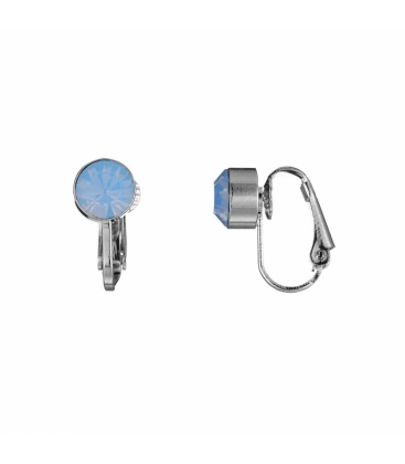 Zilverkleurige oorclips met lichtblauwe ondoorzichtige strass steen