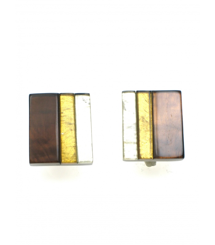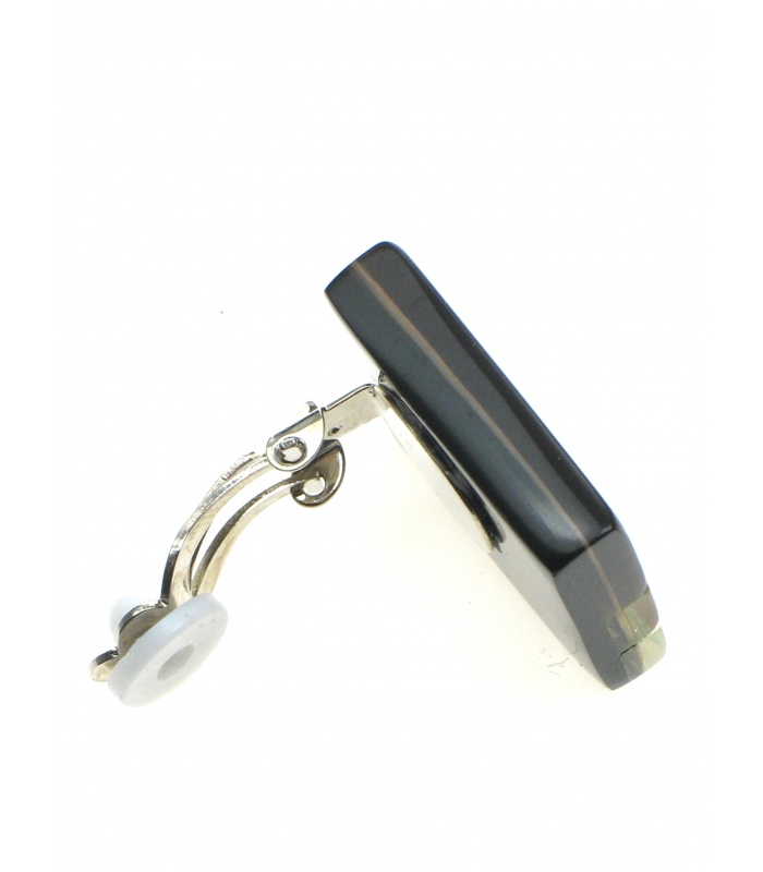 Bruin met zilverkleurige vierkante oorclips van Culture Mix.