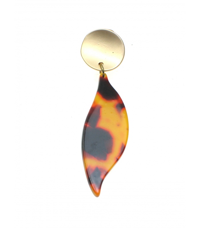 Bruine oorclips met bladvormige hanger en goudkleurig klemmetje