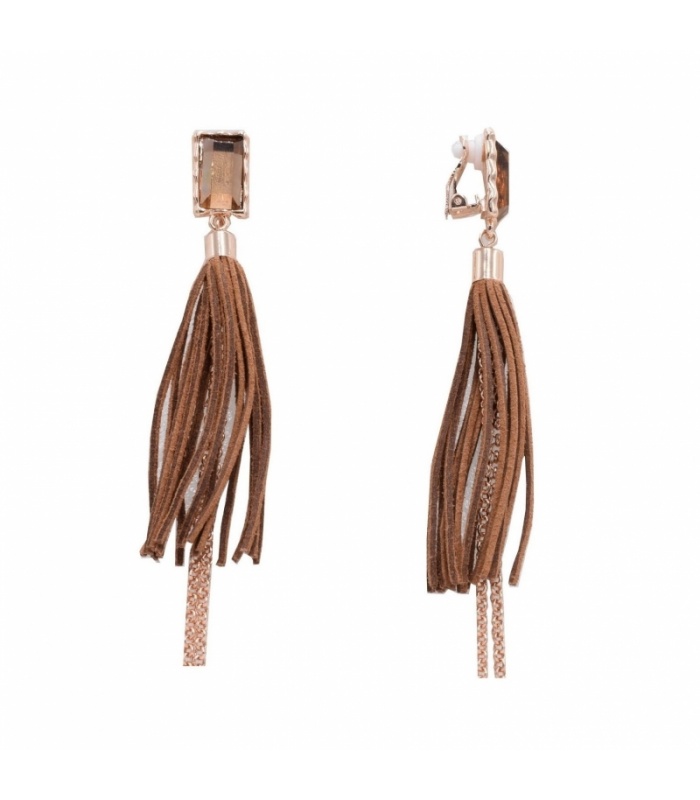 Bruine oorclips met een rose cold rand om het oorstukje en kettinkjes