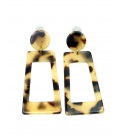 Goudkleurige oorclips met bruine ovale hanger van kurk