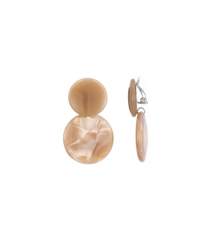Wil je een oorbel die subtiel en stijlvol is? Deze oorclips in beige zandtint combineren een gladde bovenkant met een licht glanzende, gemarmerde onderzijde. Een natuurlijke, elegante look voor elke gelegenheid.