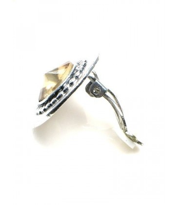Oorclips met zilverkleurige rand met bruin oranje strassteen