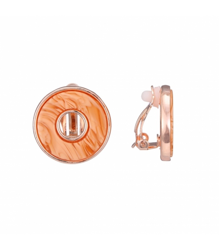 Ronde oorclips met bruine kunsthars inleg van het merk Belle Miss