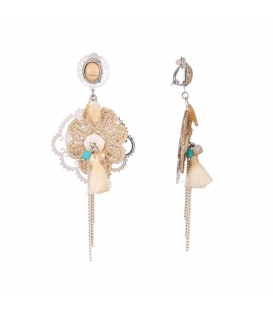 Waar eindigt crème en begint beige, waar is wit geen wit meer maar crème geworden? Je moet onze oorclips goed bekijken, inzoomen. Die crème clip oorbellen met kunstparel: zo crème als crème kan wezen. Maar die druppelvormige hanger in dieoorclips oorbellen met Swarowski-achtig steentje, neigt die niet meer naar beige? En die grappige oorclips in de vorm van een opgerold touwtje, is dat geen zandkleur? Oorclips geschikt voor oren zonder gaatjes.