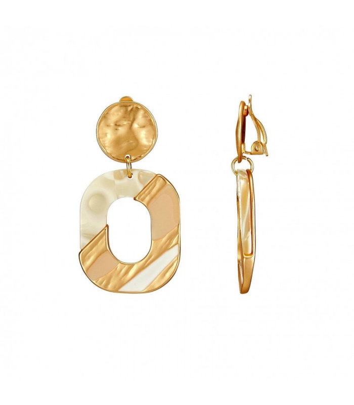 Beige gestreepte oorclips met een goudkleurig oor stukje