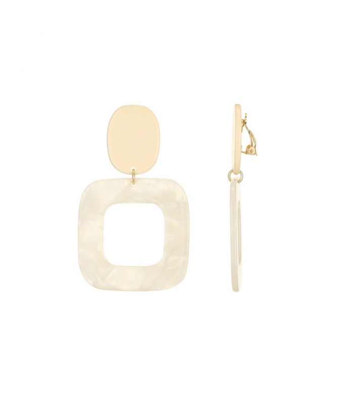 Creme oorclips met vierkante hanger en een effen oorstukje.
