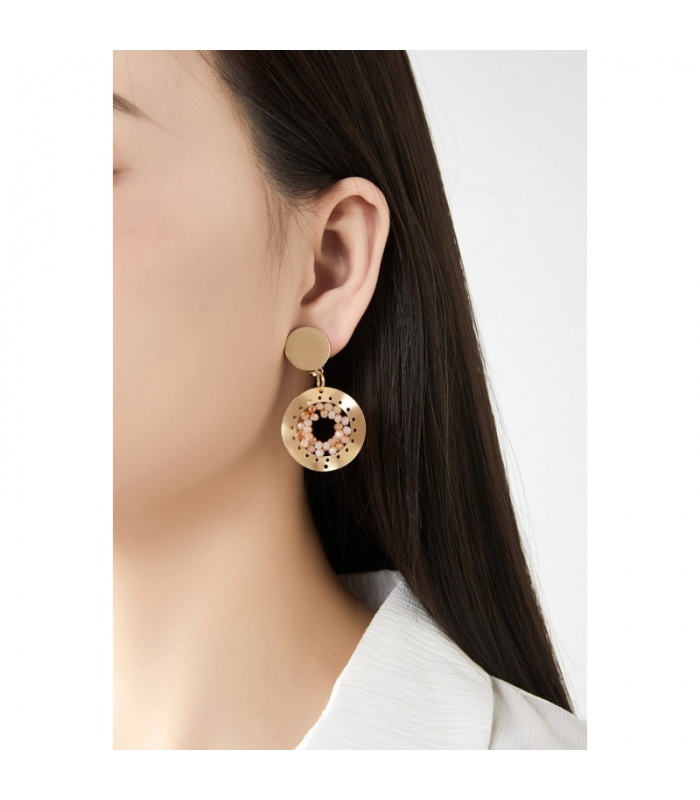 Wil je warmte toevoegen aan je look? Deze oorclip met goudkleurige ring en perzikkleurige kralen brengt direct een zachte, frisse uitstraling. De open cirkelvorm en het speelse kleurgebruik zorgen voor een lichte, stijlvolle flair.