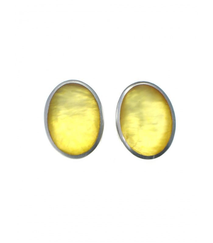 Hoe combineer je een zonnige kleur met een elegante look? Deze gele oorclips doen het moeiteloos. De ovale vorm en parelmoerachtige glans geven een lichte, frisse uitstraling. Perfect voor wie houdt van unieke oorbellen met een zachte glans.