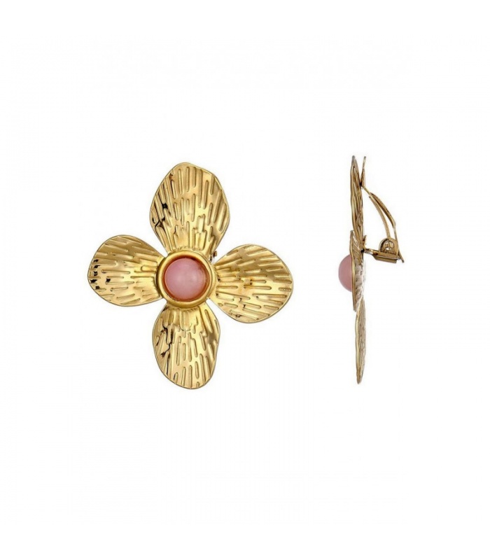 Deze goudkleurige oorclips in bloemvorm zijn voorzien van een subtiel roze steentje, wat zorgt voor een romantische en elegante uitstraling. De oorbellen zijn perfect voor zowel dagelijkse outfits als speciale gelegenheden. Ze zijn ontworpen voor comfort en stijl, waardoor ze een waardevolle toevoeging zijn aan je sieradencollectie