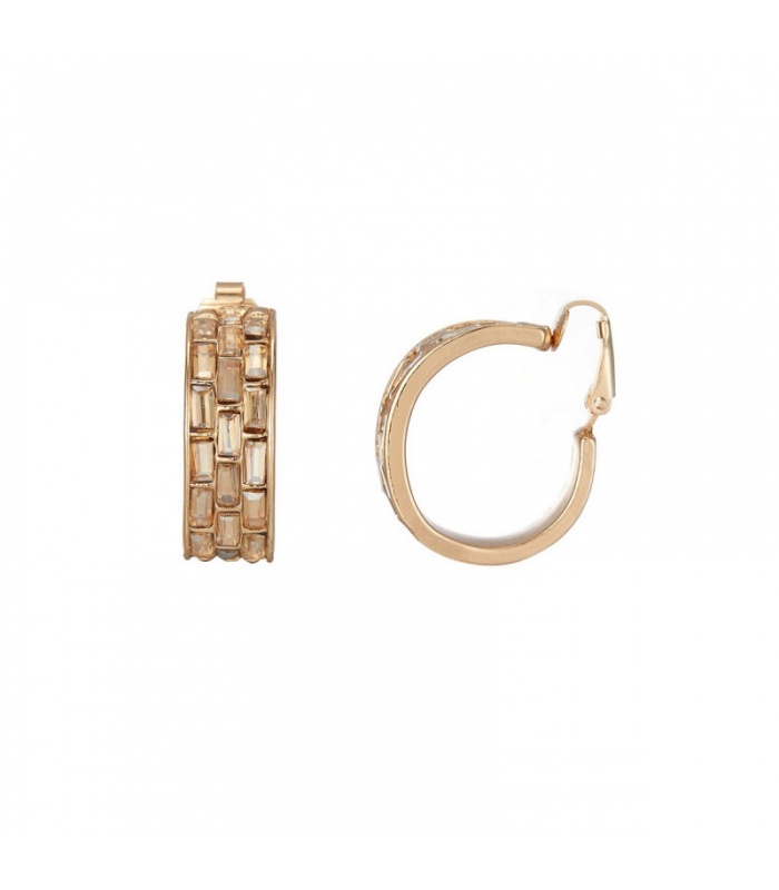 Deze elegante goudkleurige creolen oorclips met schitterende kristallen inleg stralen pure luxe uit. De kristallen vangen het licht prachtig op, wat zorgt voor een subtiele schittering bij elke beweging. Deze oorclips zijn perfect voor speciale gelegenheden of om een stijlvolle draai te geven aan je dagelijkse look, zonder dat je oor gaatjes nodig hebt. De combinatie van goud en kristal geeft deze oorclips een tijdloze charme die nooit uit de mode raakt.
