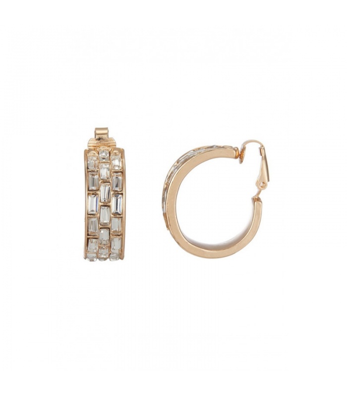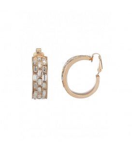 Deze elegante goudkleurige creool oorclips zijn voorzien van fonkelende glas steentjes die een prachtige glans geven bij elke beweging. Het verfijnde ontwerp combineert klassieke stijl en vloeugje modern. De clips zijn comfortabel te dragen zonder dat je gaatjes in je oren nodig hebt.