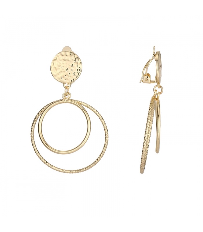 Goudkleurige oorclips met 1 gladde cirkel en 1 bewerkte cirkel