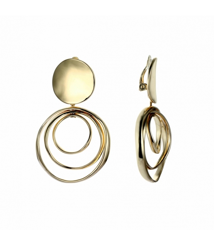 Goudkleurige oorclips met 3 verschillende groottes in ringen .