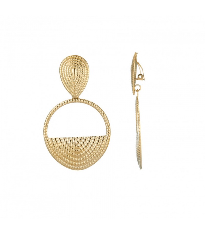 Mooie goudkleurige oorclips. Ze zijn voorzien van een uniek motief dat elke outfit een vleugje glamour geeft. Perfect voor elke gelegenheid, van dagelijkse elegantie tot avondglans.