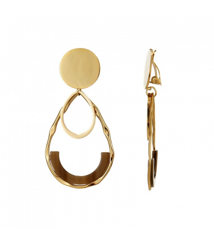 Goudkleurige oorclips met een taupe kleur in de hanger.