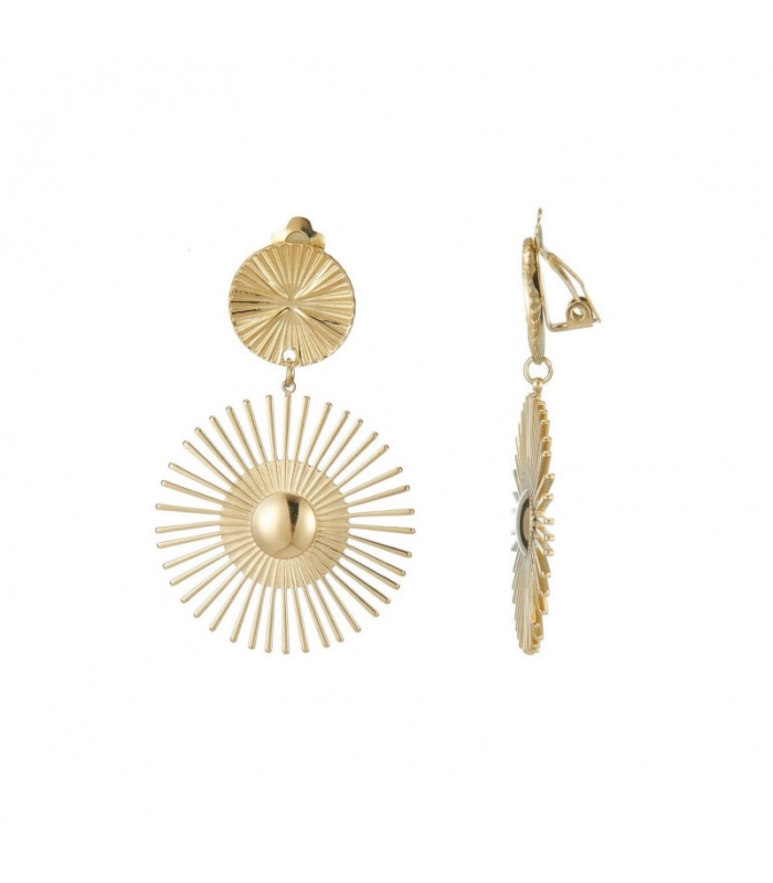 Schitter dit seizoen met onze goudkleurige zonne oorclips. Deze oorclips zijn ontworpen om een vleugje warmte en elegantie toe te voegen aan elke outfit. Met hun stralende zonnedesign en goudkleurige afwerking, staan ze symbool voor kracht en positiviteit. Perfect voor de modebewuste vrouw die graag haar persoonlijke stijl laat schijnen.