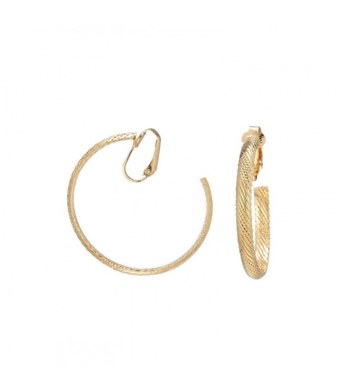 Deze goudkleurige oorclips zijn voorzien van een verfijnd patroon dat elke outfit een stijlvolle touch geeft. Ze zijn ideaal voor wie geen gaatjes heeft, maar toch wil genieten van modieuze oorbellen. De clips zijn nikkelvrij en uitgerust met comfortabele rubbertjes voor dagelijks draagplezier.
