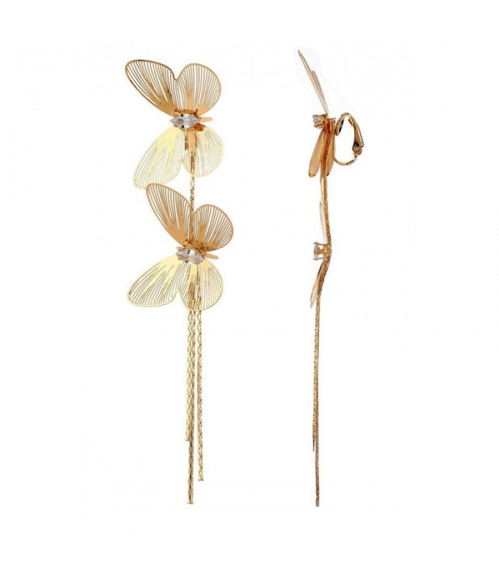 Deze goudkleurige oorclips met vlindermotief en heldere kristallen steentjes voegen een vleugje elegantie toe aan elke outfit. Het verfijnde ontwerp combineert de tijdloze charme van vlinders met de sprankeling van kristallen, waardoor ze perfect zijn voor zowel dagelijkse als feestelijke gelegenheden.